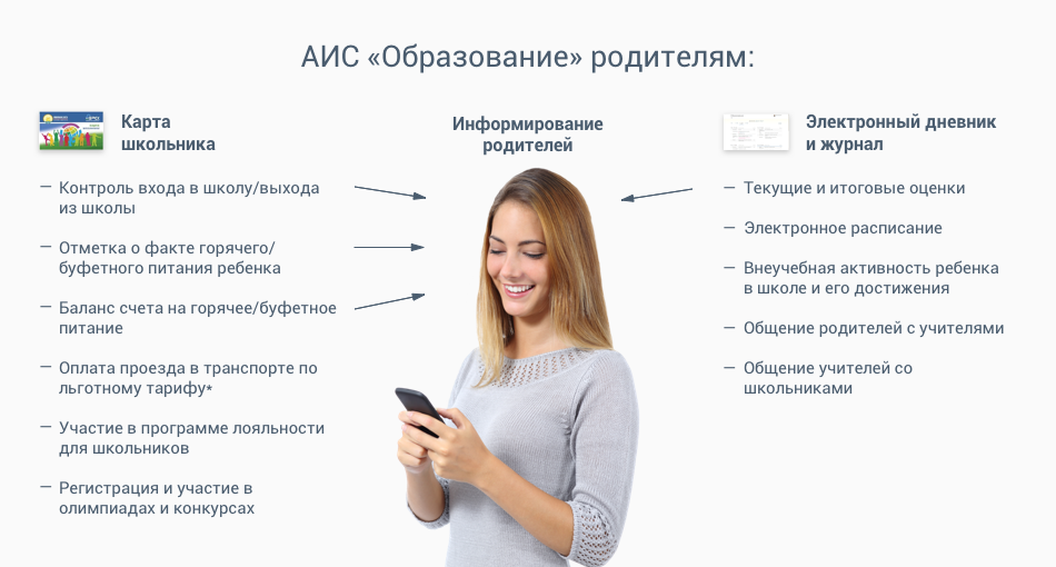 Автоматизированная информационная система «Образование» поможет вам участвовать в школьной жизни вашего ребенка в любое удобное для вас время 24 часа в сутки на протяжении 365 дней в году независимо от вашего местонахождения при помощи Личного кабинета родителя.